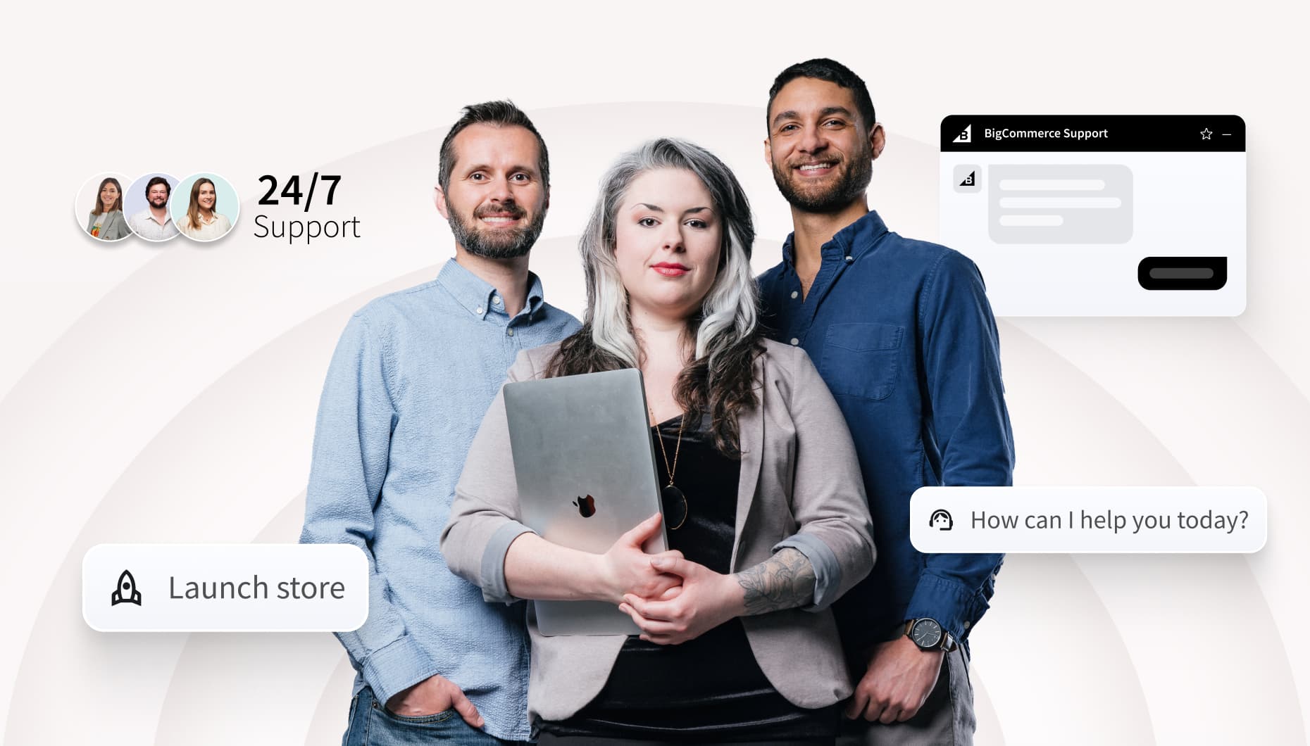 Du kan føle deg trygg på at du bare trenger å ringe BigCommerce-ansatte døgnet rundt for å få brukerstøtte, og at tjenester for suksess, lansering eller migrering er tilgjengelige før, under og etter lanseringen.