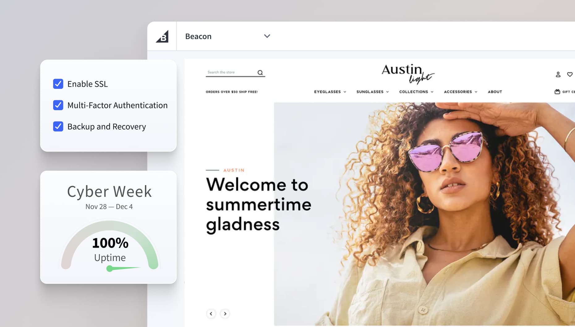 99,99 % serveroppetid, hurtiglastende sider og vedlikehold som håndteres for deg, inkludert sikkerhet, hosting, samsvarsstyring og oppdateringer.