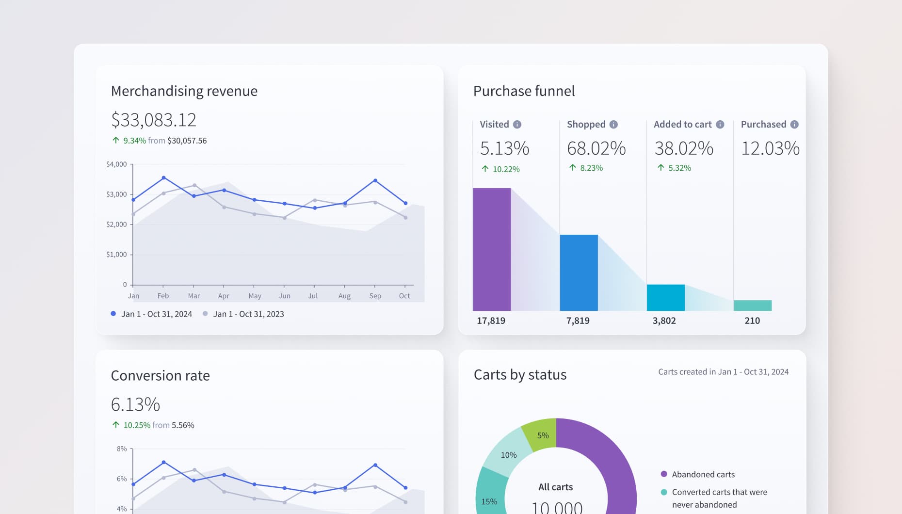 Med kraftige, innebygde analyseverktøy i alle abonnementer kan du følge med på virksomheten din og gjøre justeringer for å øke veksten. I tillegg kan vår voksende pakke med AI-verktøy gjøre de daglige oppgavene raskere og redusere arbeidet med å drive virksomheten.