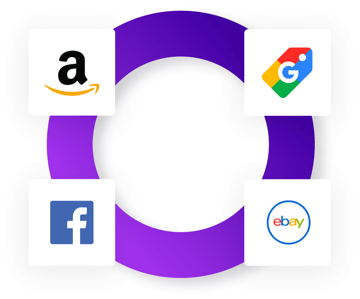 Vis produktene dine for millioner av kunder ved å legge dem ut på markedsplasser med høy trafikk som Amazon og eBay.