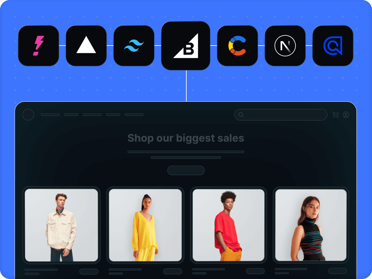 Vår mal for headless storefront er komponerbar, og kommer med alle BigCommerce storefront-funksjonene forhåndsintegrert. Catalyst er funksjonell og operativ på få minutter, klar til å tilpasses din merkevare.